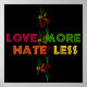 Le message est simple et pourtant si difficile à vivre. En rouge, vert, orange, jaune mots "Aimer plus Hate Moins." Passe-le. Le monde a besoin de l'entendre.