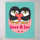 Affiche Aimez beaucoup Kawaii mignon pingouins tenant coeu