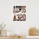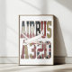 On a white background, the typographic elements and national color motifs feel refined and balanced, creating a museum-style presentation that highlights the aircraft’s global relevance. The A320 is operated by hundreds of airlines worldwide and is renowned for its fuel efficiency, reliability, and adaptability across diverse operating environments. This clean presentation conveys technological confidence and timeless design, making the image particularly well suited for editorial use, educational displays, or minimalist branding where clarity and detail are paramount.