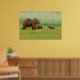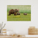 Affiche Alaskan Brown Bear with Cubs in a Meadow