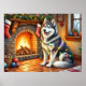 Affiche Alaskan Malamute Fireplace with Christmas Lights