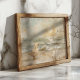 Ce charmant tableau à l'huile présente un albatros paisible posé sur le rivage sablonneux, qui domine les vagues tandis que la lumière douce du soleil se réfléchit au large. Les tons pastel de la mer, du ciel et du soleil créent une atmosphère apaisante, tandis que les albatros ajoutent une touche de chaleur et de caractère au paysage serein. La texture rustique et l'esthétique vintage de l'oeuvre évoquent les sentiments de nostalgie et de tranquillité, en faisant un complément parfait à tout espace qui cherche à capturer la beauté des moments de calme de la nature.