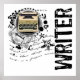 Un scrapbook numérique grunge unique design de collage d'une machine à écrire à l'ancienne avec le mot "Writer" et l'Alchimie de l'écriture avec des embellissements - juste pour les écrivains.