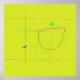 Des lignes et des formes Abstraites sont disséminées sur un arrière - plan vert citron, créant un sentiment de hasard et de spontanéité. Des traits minces et multicolores se croisent et se courbent, formant des motifs géométriques et libres.
