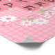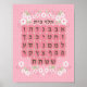 Poster rose Alef Beis avec fleurs blanches. Doux pour n'importe quelle chambre de filles. Description claire des lettres hébreuses.