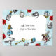 Vintage Alice in Wonderland characters framed by a blue diamond background. Add your own custom text!