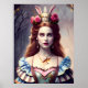 Alice au pays des merveilles générée par l'IA Alice a inspiré Alice porte une couronne de lapin royal tandis que la reine