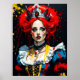Imaginant Alice comme l'imaginaire de la Reine Rouge L'IA a généré de l'art dans les couleurs de rouge, bleu, jaune, noir et blanc avec des plaques d'encre.