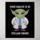 Apportez une touche de soins extraterrestres à votre espace avec cette affiche montrant un médecin alien sympathique en uniforme professionnel. Avec un stéthoscope autour du cou, ce professionnel de la santé alien est prêt à prendre soin de votre bien-être. Le texte ludique "Votre santé est aux mains stellaires" ajoute une touche cosmique amusante à votre décor de maison ou de bureau. Idéal pour les amateurs de science-fiction, les amateurs de médecine ou toute personne qui aime un design unique et hors du monde.