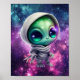 Un mignon petit alien portant un sweat - shirt à capuche dans une galaxie étoilée.
