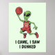 Faites-vous plaisir avec notre affiche amusante et énergique avec un alien cool prêt à faire une photo épique. Cette conception montre un alien levant en toute confiance un ballon de basket, prêt à s'ennoyer, avec l'expression "I Came, I Saw, I Dunked" ajoutant une touche d'humour et d'esprit cosmique. Parfait pour les amateurs de basket et les amateurs d'art décalé, cette affiche apporte une touche intergalactique unique à votre décoration murale.