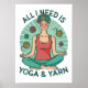 The phrase "Woman meditating with yarn, all I need is Yoga and Yarn" suggests that the woman finds both yoga and yarn crafting to be important aspects of her life. By combining the two activities, she is able to achieve a sense of relaxation, mindfulness, and creativity.