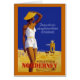 Belle publicité par affichage allemande vintage Norderney, une île outre de la côte de la Mer du Nord de l'Allemagne. Elle montre une belle jeune femme appréciant le soleil sur la plage. Le message est "des herrliches Erlebnis de neues d'ein de wieder d'Immer" - "toujours une nouvelle expérience merveilleuse."