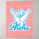 Aloha, Shaka Hand, Hang Loose poster d'été, version rouge. - Jouer avec la série Stripes, bandes bleues et rouges, affiche de typographie, t-shirt de typographie,
