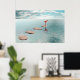 A minimalist surreal artwork featuring a solitary flamingo standing on stepping stones above calm water, surrounded by open space and soft light. The composition evokes themes of solitude, balance, patience, and inner calm. With its clean lines and tranquil atmosphere, this piece is ideal for modern interiors, contemporary wall art, and collectors drawn to quiet, contemplative visuals.
