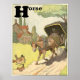 La lettre H de l'alphabet est pour "Cheval" tirant une calèche avec un livreur voyageant sur une route de terre au passé une maison à colombages traditionnelle dans la campagne. Dessin de l'artiste français Benjamin Rabier. © KidsLife