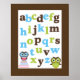 Alphabet Lettre Mur Art pour Salle Enfants. Les Chouettes Intelligentes aident votre petit à apprendre leurs cab. Lettres vertes, bleues et marron sur un arrière - plan brun pois avec deux chouettes intelligentes.