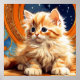 Poster avec un chaton orange dans le style Art Nouveau d'Alphonse Mucha. Ce chaton mignon aux yeux bleus vous regarde adorablement sur fond de ciel nocturne plein d'étoiles. Un cadeau merveilleux pour les amoureux de les chats et les collectionneurs Art Nouveau !