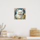 Poster avec un chaton dans le style Art Nouveau d'Alphonse Mucha! Un chaton blanc et moelleux aux yeux bleus pose avec des fleurs jaunes. Un joli cadeau pour les amoureux de les chats et les collectionneurs Art Nouveau!