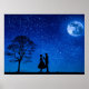 Amants sous une pleine lune avec un fond de soirée étoilé bleu. 100% Personnalisable. Cliquez sur le bouton PERSONNALISER pour ajouter, déplacer, supprimer, redimensionner ou modifier n'importe quelle police ou graphique.