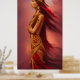 Affiche Américaine Indienne robe rouge or plumes