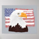 Affiche American Bald Eagle and Flag - transparent sur gri