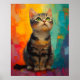 A digital painting of an American Shorthair cat with striking green eyes, sitting against a vivid abstract background of orange, blue, and pink. This expressive artwork blends realism with bold brushstrokes, capturing the charm and curiosity of the breed. Perfect for cat lovers and art collectors, this piece adds warmth and personality to any space.