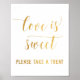 Pancarte de faveurs de fête "Elegant Gold Calligraphy Love is Sweet Please Take a Treat"