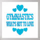 Les gymnastes et tous ceux qui aiment la gymnastique apprécieront ce design bleu brillant avec les coeurs et les lettres amusantes disant Gymnastique What's Not To Love.