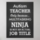 Cette affiche drôle dit Autism Teacher, seulement parce que Multitâche Ninja n'est pas un véritable titre professionnel. Cette affiche peut être personnalisée pour dire Enseignant des besoins spéciaux, Enseignant du syndrome de Down, ou même simplement un Enseignant spécial général. L'arrière - plan est une texture de tableau noir, mais vous pouvez la supprimer. Une fois enlevé, vous verrez un arrière - plan bleu. Pour modifier la couleur, cliquez sur Customiser. Faites-moi savoir si vous avez besoin d'aide pour changer la couleur arrière - plan. En raison de la police blanche, il est préférable d'utiliser des couleurs sombres. Ces affiches sont parfaites pour faire la lumière sur la difficulté d'être enseignant, instructeur, assistant pédagogique TA ou assistant pédagogique IA. En tant que mère d'un garçon autiste, je sais que nous devons avoir un bon coup de rire et garder un sens de l'humour. Ces affiches font un cadeau amusant pour montrer votre soutien à une occasion comme l'appréciation de l'enseignant.