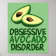 Poster d'humour Obsessive Avocado Disorder pour un aliment ou une cuisine de restaurant J'adore les avocats et les aliments verts sains. Surtout dans des choses délicieuses comme le guacamole. Un joli cadeau imprimé vert.