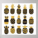 Ensemble d'ananas noirs à la texture différente. Créatif design imprimable avec ananas géométrique dessiné à la main. Texture de parties scintillant d'or. Illustration vintage Tropic Escape : Palm Feuilles & Flamants roses Take Over in Color. Collection d'ananas stylé à la main : Fête d'ananas géométriques aux reflets dorés. ananas, arrière - plan, abstrait, illustration, texture, décoration, nourriture, plage, été, mode, vintage, or, dessiné à la main, fête, affiche, fruit, confetti, ligne, noir, géométrique