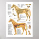 Anatomie squelettique du cheval montrant les os et les articulations. Anatomie vasculaire avec artères et veines y compris le coeur et la circulation. L'affiche est étiquetée avec des descriptions.