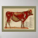 Affiche Anatomie Vintage des muscles de la vache 1917