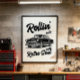 Célébrez l'élégance du passé avec ce graphisme noir et blanc saisissant avec une voiture d'époque et l'expression "Rollin' with Retro Soul." La palette de couleurs minimaliste met en valeur les détails complexes de la voiture, ce qui en fait un élément parfait pour les amateurs d'automobiles classiques et de design raffiné.