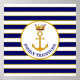 Poster à rayures bleues et blanches sur l'ancre et la couronne d'or nautique de famille.