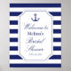 Ce panneau d'accueil de douche nuptiale est le toucher parfait pour la fête que vous lancez votre ami spécial, Ce panneau d'accueil d'inspiration côtière dispose d'une ancre bleu marine avec corde et un arrière - plan rayé bleu et blanc. Personnalisez avec le bide pour être les noms et la date de douche.