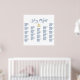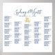 Ancrages nautiques poster en blanc avec texte bleu marine, pour une grande réception. Comprend différentes tailles avec des sections pour ajouter les noms des invités par ordre alphabétique ou par numéro de table. Les sections sont destinées aux tables pouvant accueillir jusqu'à 10 personnes, et peuvent contenir jusqu'à 22 tables, ou supprimer des sections pour vos besoins. Écriture bleu foncé en haut pour les prénoms de la mariée et du marié en police manuscrite moderne. Tout le reste est imprimé en bleu avec la date de l'événement sous les noms. Les deux ancres dorées sont en dessous et les listes de tables sont décalées en rangs verticaux. Si vous modifiez la taille, assurez-vous qu'aucun texte ne se rapproche des bords.