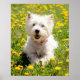 Cette jolie photo de Getty Images montre un chien Westie jouissant du printemps dans un champ de pissenlit.
