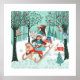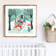 Affiche Animaux mignons Hiver Merveilleux Bois Filles fore