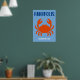 east coast, retro, wall decor, seafood, water animal, bright colors, beach house, maryland decor, summer vibe, graphic design, aqua, sky blue, souvenir
