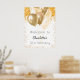 Une affiche de bienvenue pour une fête d'anniversaire de 21e anniversaire (ou de tout âge), fillette et glamour. Un arrière - plan blanc décoré de faux gouttes de parties scintillant d'or, la peinture goutte à goutte, ballons. Personnalisez et ajoutez un nom et un âge. Retour : aucune conception