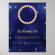 Une affiche de bienvenue pour une fête d'anniversaire de 50e (ou tout âge). Un arrière - plan bleu marine avec d'élégants faux étincelles et un cadre photo en diamant faux or. La couleur bleue est inégale. Personnalisez et ajoutez une photo, un nom et un âge. Lettres d'or.