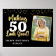 Photo d'anniversaire rendant AGE look Good Black Gold Poster. Célébrez n'importe quel anniversaire d'âge pour elle ou lui avec un signe de bienvenue imprimé sur une affiche avec une photo, le titre FABRIQUER "AGE" RESSEMBLE BON avec fausse feuille d'or typographie et confetti script moderne et nom ou votre texte personnalisé dans votre choix de couleur arrière - plan (montré en noir) pour coordonner avec vos couleurs de thème de fête. OPTIONS : L'échantillon est présenté dans une taille de 24x18" sur papier à valeur (Matte); d'autres tailles d'impression standard et personnalisées et qualité du papier, fichier de téléchargement numérique instantané pour l'impression locale ou le transfert de la conception à une planche à mousse, bannière, toile ou d'autres options de produit sont disponibles sur la page de commande. CONSEIL DE REdimensionnement : Choisissez Taille personnalisée pour les bordures paires en modifiant la hauteur et la largeur proportionnellement APRÈS avoir cliqué sur l'icône DÉVERROUILLER (ressemble à un lien de chaîne). ASSISTANCE : Pour obtenir de l'aide sur la modification ou la personnalisation de la conception, le changement de couleur, le redimensionnement ou le transfert de la conception, contactez le concepteur AVANT DE COMMANDER via l'onglet MESSAGE Conversation Zazzle ou envoyez un courriel à makeitaboutyoustore@gmail.com.