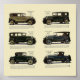 Il s'agit d'une numériquement impression améliorée dérivée d'une publicité vintage de magazine automobile de 1928 présentant six modèles de voitures différents. Vous pouvez customiser la couleur arrière - plan.