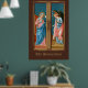 ". L'Ange du Seigneur déclara à Marie, ℟. Et elle conçut l'Esprit Saint." C’est ainsi que commence la prière trois fois par jour de l’Angelus, la Bienheureuse Vierge Marie (BVM), qui commémore l’Incarnation à l’Annonciation. + L'Annonciation était un sujet très populaire dans l'art du Moyen Âge et de la Renaissance. En tant que composition à deux personnes, le sujet se prêtait à l'utilisation sur les feuilles extérieurs des triptyques : l'ange sur une feuille; Marie, sur l'autre. Un triptyque est une oeuvre d'art, le plus souvent une peinture à panneau, qui est composée de trois parties articulées de telle sorte qu'elle puisse être affichée ouverte ou pliée fermée. + Ici, Filippo Lippi (1406-1469) a peint l'Annonciation en tempête sur le bois dans des roses chaudes, saumon et rouges et dans des bleus brillants et foncés. Les deux figures se tiennent dans leurs espaces respectifs étroits, l'Archange Gabriel se inclinant légèrement devant la douce et douce Maiden Mary. + Saints_Aabondance aime un arrière - plan brun foncé pour cette image. Un arrière - plan brun foncé donne l'impression aux spectateurs qu'ils sont spectateurs observant la scène par une fenêtre. Mais, comme d'habitude, nous avons fourni une carte postale Palette de Couleur pour d'autres teintes suggérées. + Fête de l'Annonciation : 25 mars ; Fête de Saint Gabriel l'Archange : 29 septembre + Crédit image (M 038) : Image antique de l'Annonciation de Filippo Lippi (1406-1469) d'une carte postale de fin du 19e siècle publiée à l'origine en chromolithographie, par E. Sborgi, Florence, Italie, de la collection privée de l'architecte d'éphémère religieux. Les panneaux d'origine d'un polyptyque d'origine inconnue se trouvent dans la salle philippine et philippine de la Galerie des Offices à Florence. L'Annonciation forme les moitiés supérieures des deux feuilles tandis que SS. Anthony Abbott et John le Baptiste apparaissent respectivement en bas à gauche et en bas à droite.
