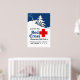 This vintage World War I poster features a snow covered cabin, on a mountain, with a American Red Cross sign hanging in the window. It reads, "Answer the Red Cross Christmas Roll Call, All you need is a heart and a dollar". Celebrate American Red Cross History with this digitally restored vintage war poster product from The War Is Hell Store.