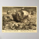 Affiche Antique 1590 Navires Et Monstres De Mer