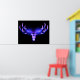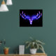 Une image fractale, à l'allure néon, violette et bleue, ressemblant à la tête d'un animal en berne sur un arrière - plan sombre.