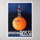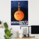 Affiche montrant une bouteille de Martini & Rossi's Aperitivo reposant sur une orange avec un visage léchant les lèvres.